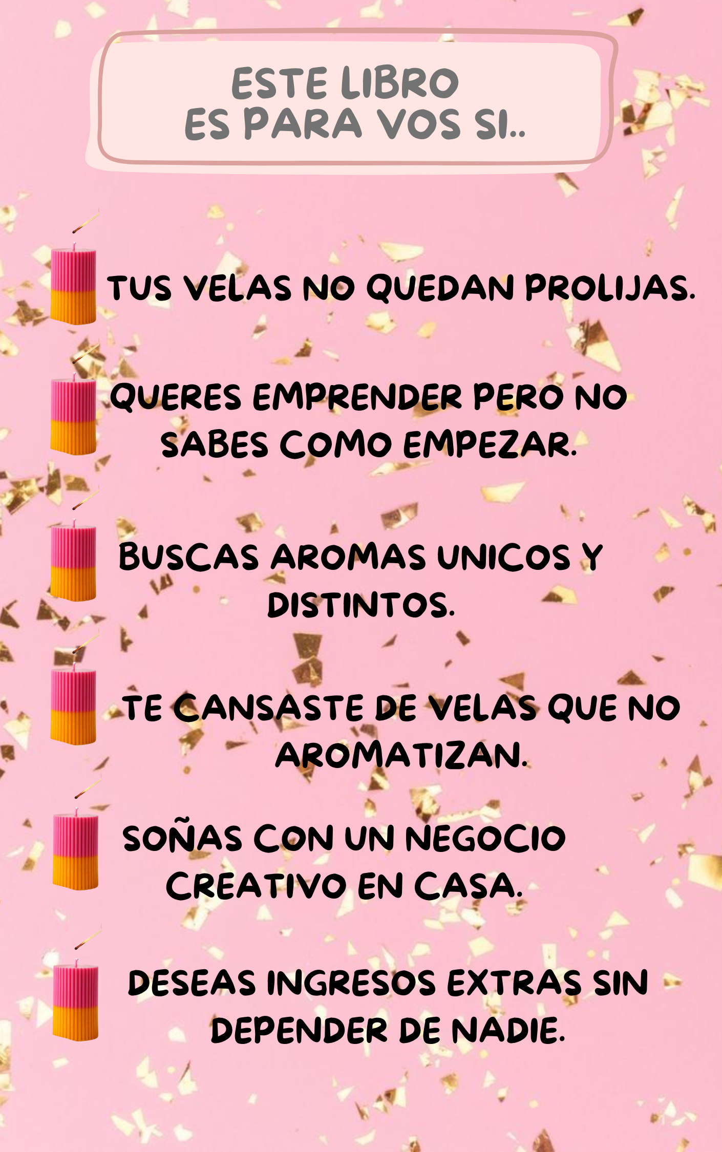 El ebook incluye técnicas, combinaciones de aromas, colores y moldes para que crees velas atractivas aunque no te consideres “artista”.